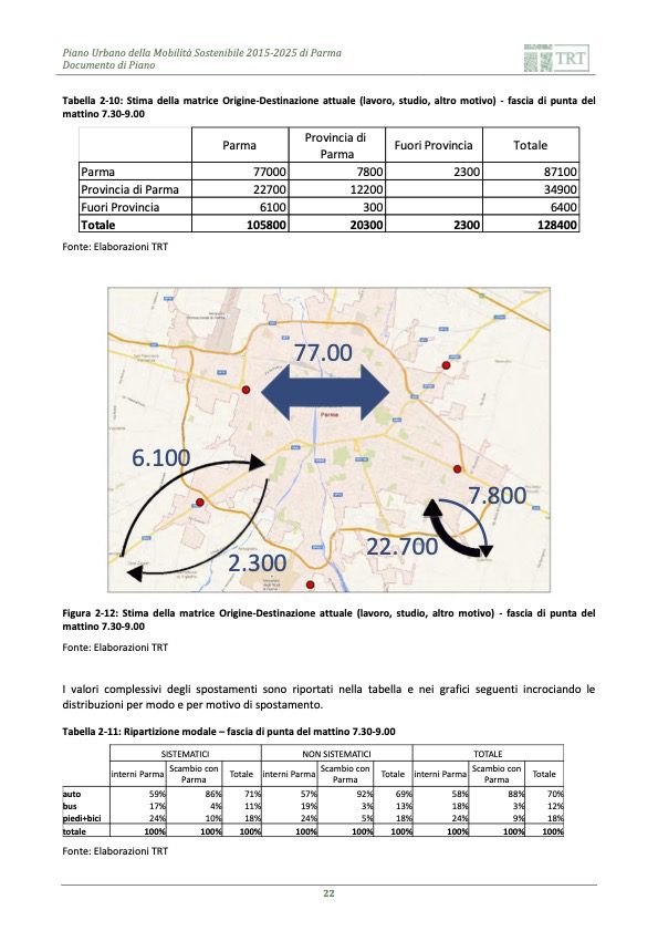 Anche il PGTU (Piano generale del traffico urbano) 2023-2025 in corso di adozione conferma il modesto apporto di traffico, nella direttrice est verso Ponte Enza, rispetto ad altre arterie di accesso a Parma.